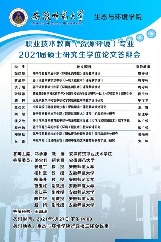 职业技术教育(资源环境)专业2021届硕士研究生学位论文答辩会