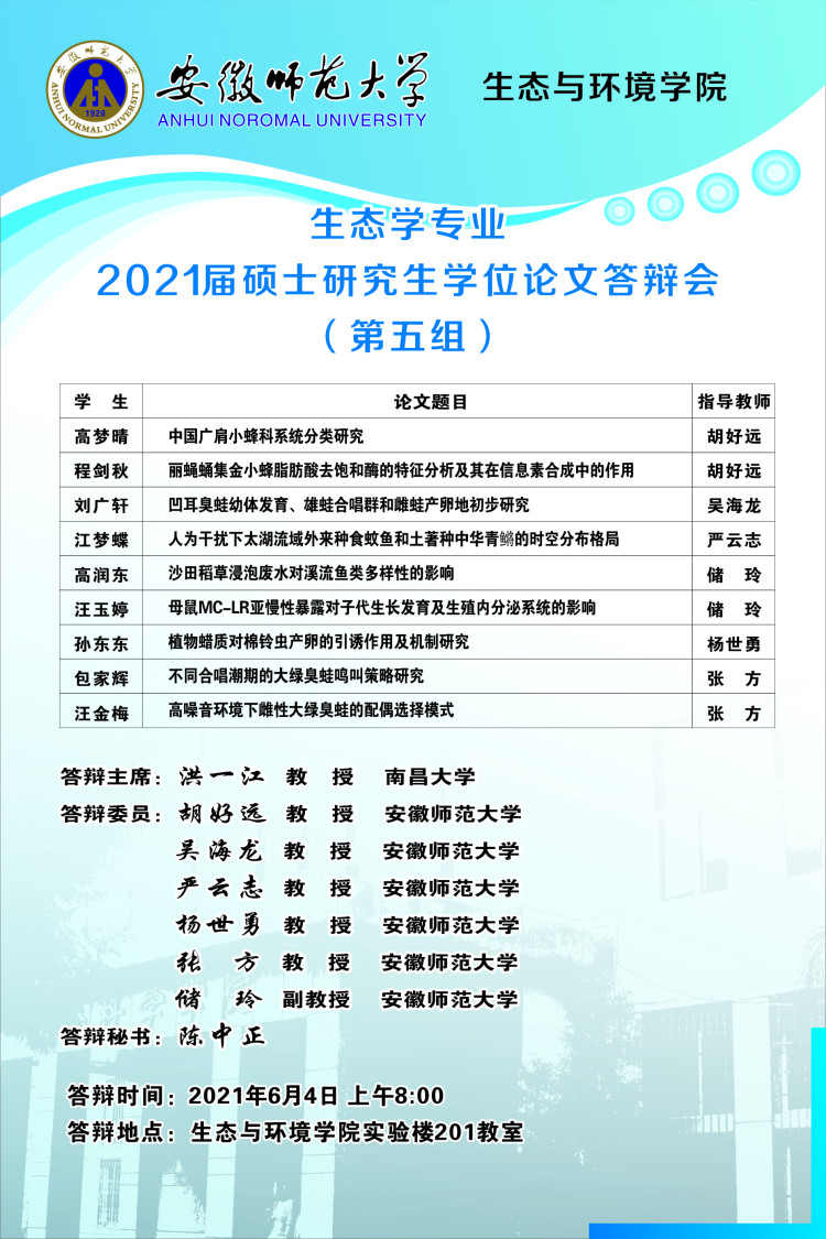 生态学专业2021届硕士研究生学位论文答辩会(第五组)