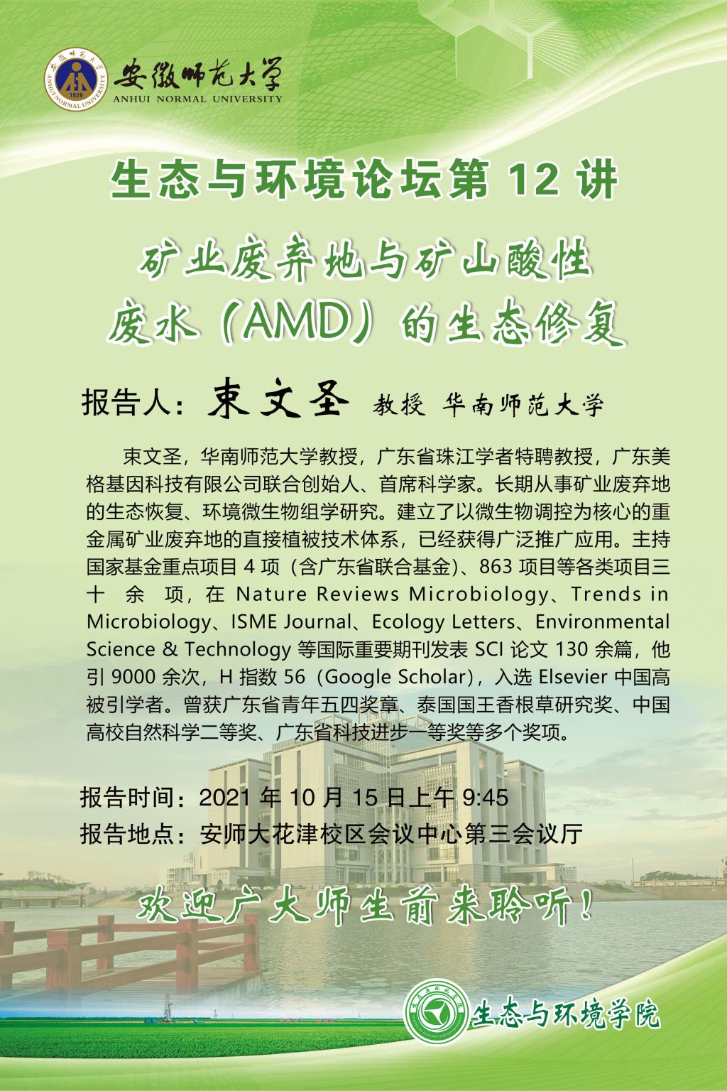 【学术预告】生态与环境论坛第12讲:矿业废弃地与矿山酸性废水(AMD)的生态修复