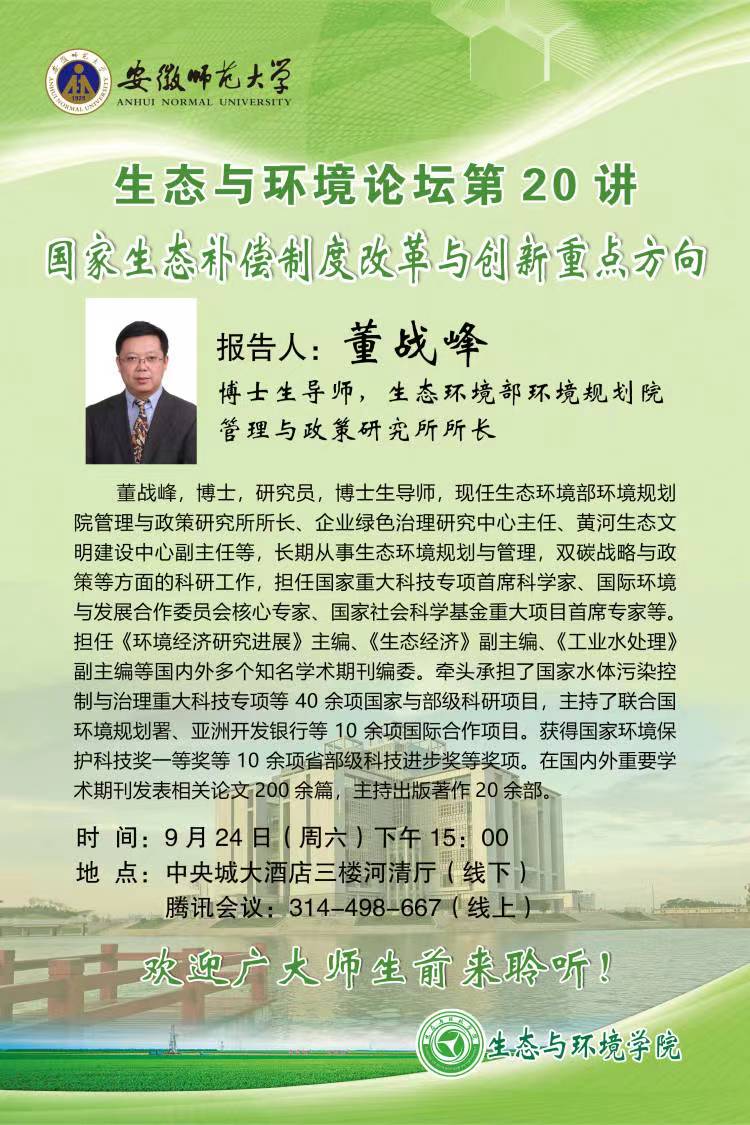 【学术预告】生态与环境论坛第20讲:国家生态补偿制度改革与创新重点方向