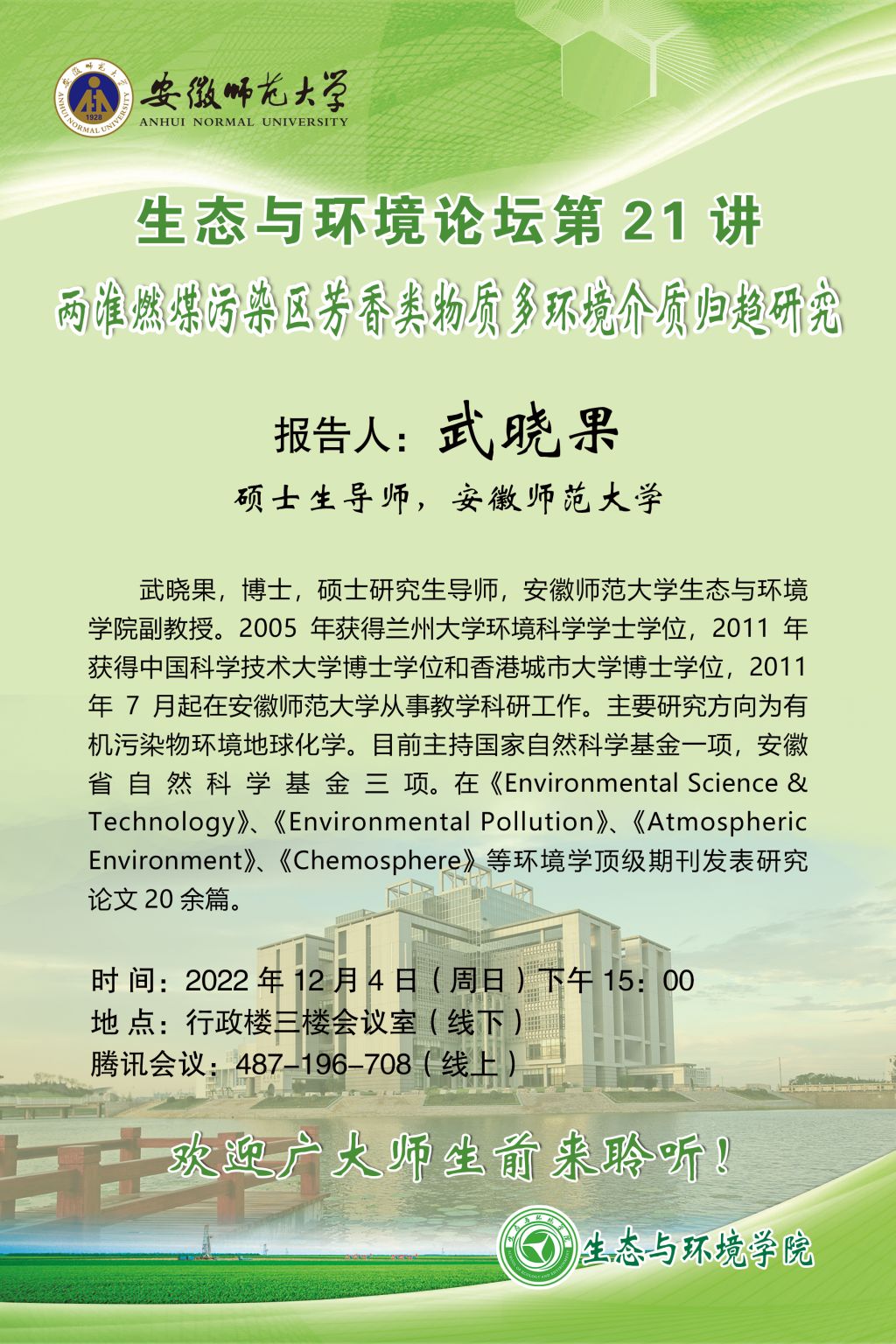 【学术预告】生态与环境论坛第21讲