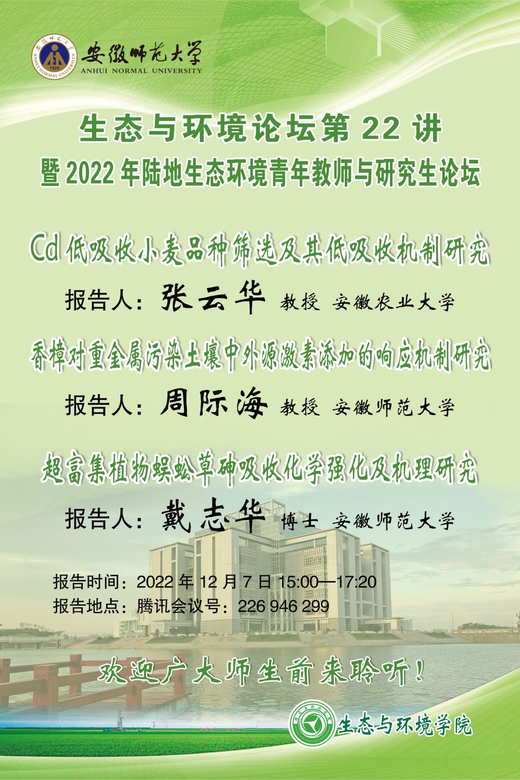 【学术预告】生态与环境论坛第22讲暨2022年陆地生态环境青年教师与研究生论坛