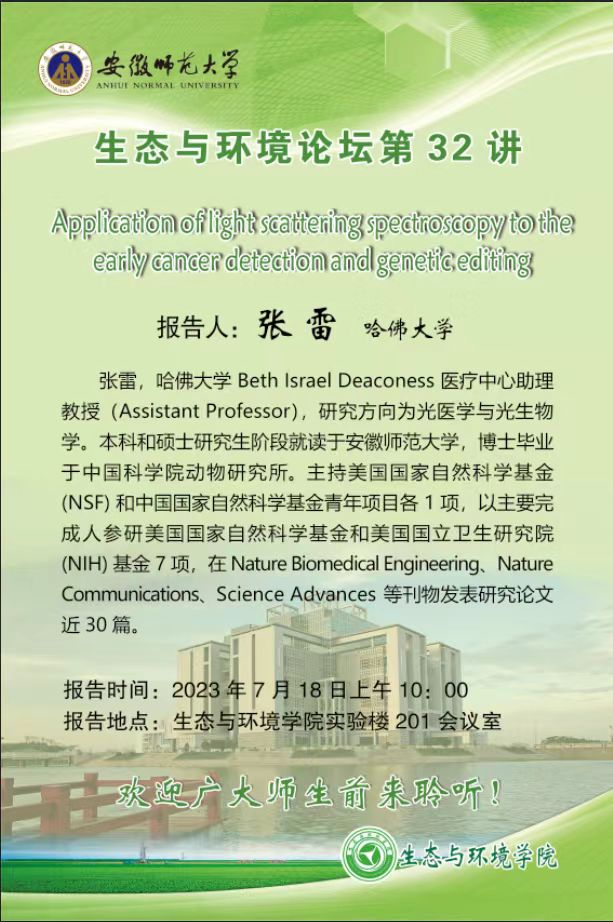 【学术预告】生态与环境论坛第32讲:Application of light scattering spectroscopy to the early cancer detection and genetic editing