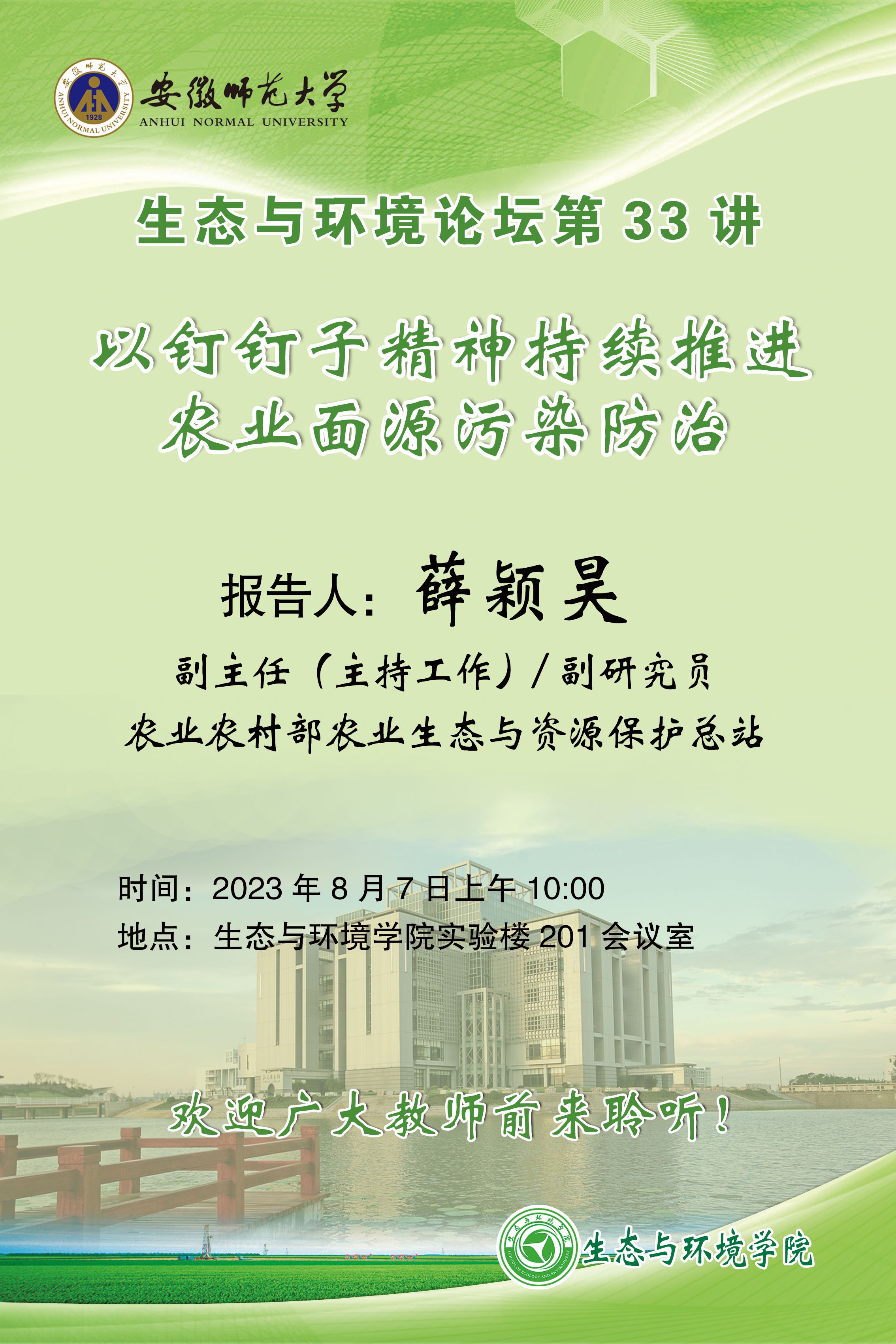 【学术预告】生态与环境论坛第33讲:以钉钉子精神持续推进农业面源污染防治