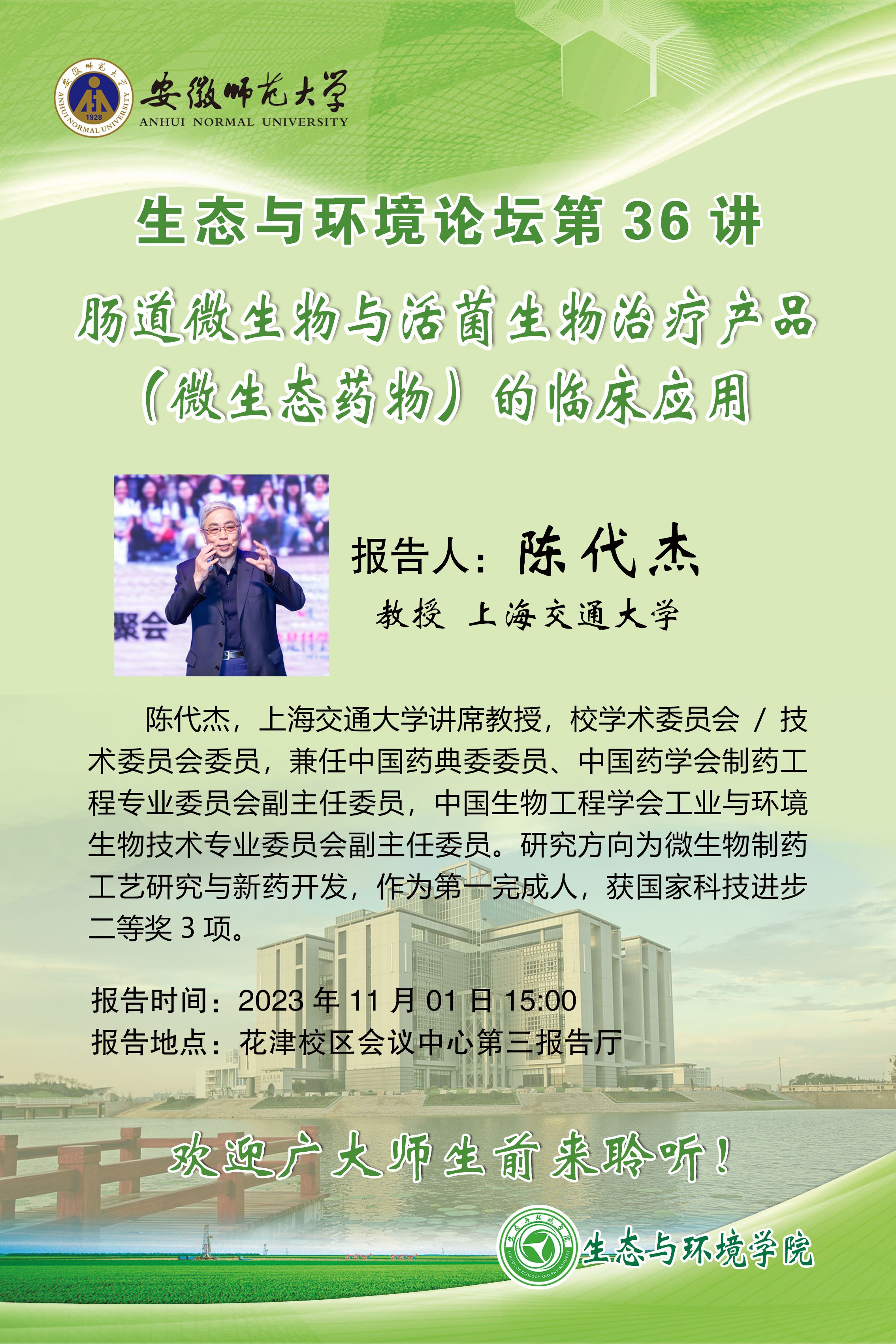 【学术预告】生态与环境论坛第36讲:肠道微生物与活菌生物治疗产品(微生态药物)的临床应用