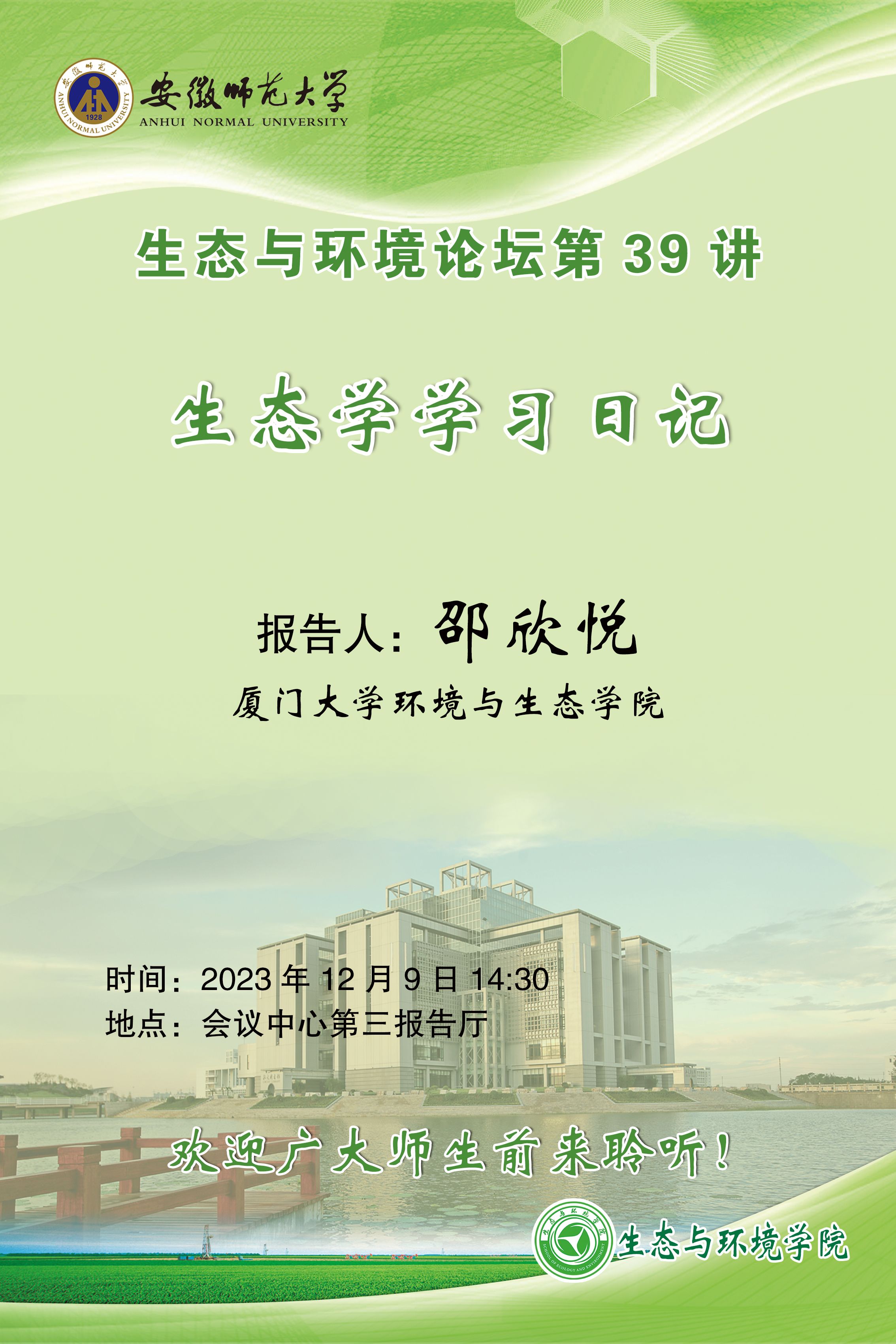 【学术预告】生态与环境论坛第39讲:生态学学习日记