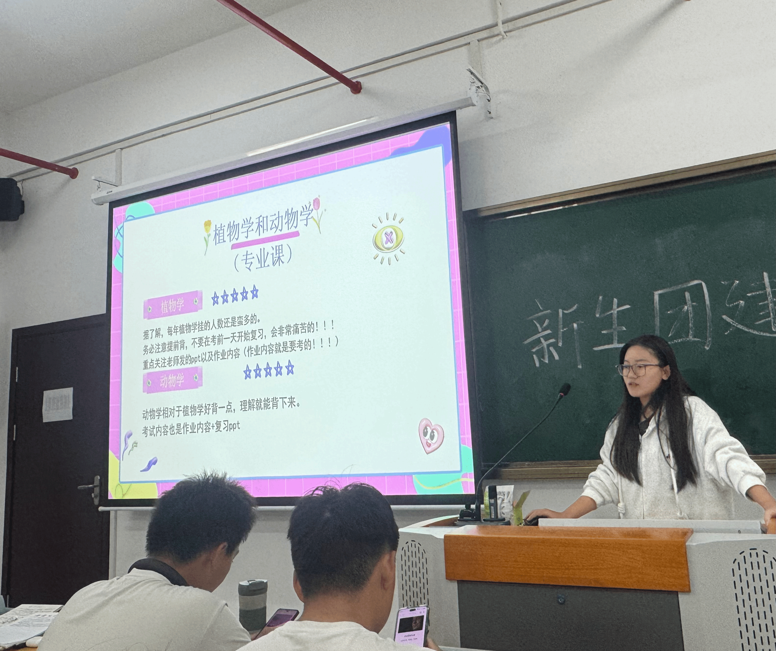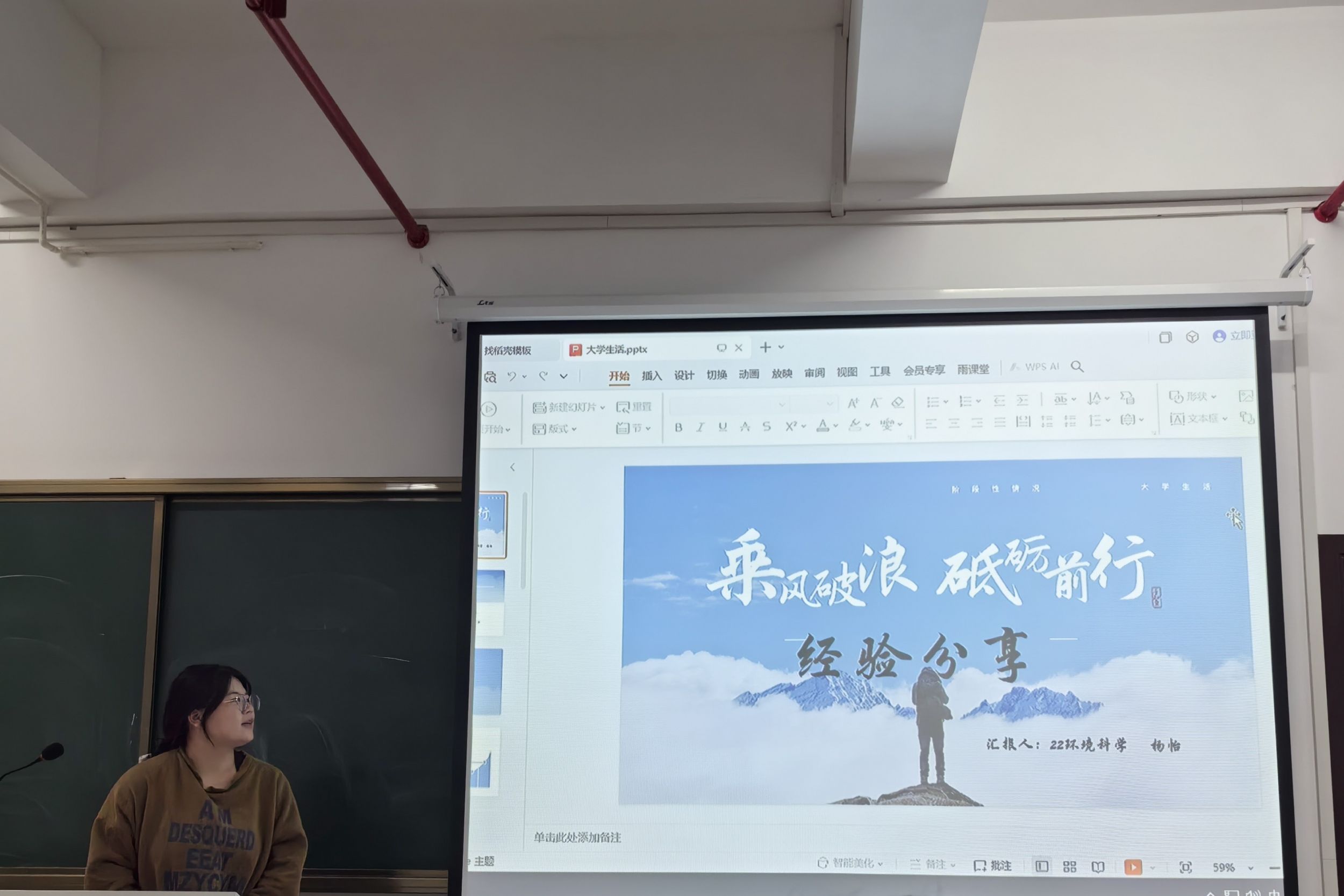 2021级张高荣、方南茜、孙胜众、田伟琪、张建熙5名同学,从专业学习、科研竞赛、考研保研等方面向2024级新生阐明了如何度过大学四年,用亲身经历激励学弟学妹们找到适合自己的节奏,培养自己的内核,抓住每一个机会,并且向学弟学妹们阐述了自己未来的规划,给同学们制定长远的目标以参考。2022级翟雪妍、赵鑫、汤婧如、杨怡、李文靖5名同学,结合自身经历从学习方法、员工工作、志愿服务、科研竞赛四个方面分享了自己入学以来的成长和收获,同时也提醒学弟学妹们要平衡好专业学习、科研实践和员工活动的关系,以发展的眼光看待别人、挑战自我。2023级、邢雅文、聂雯丽、祝薇薇3名同学,在学习方面向新生们介绍了大一新入学关于学习适应、学习建议和各科学习方法,并且从课余活动和心态转变的角度向新生们分享了自己的心得和建议。在最后的提问环节,新生提出了自己在大学中遇到的诸多切实疑问,高年级同学给予了详细的解答。