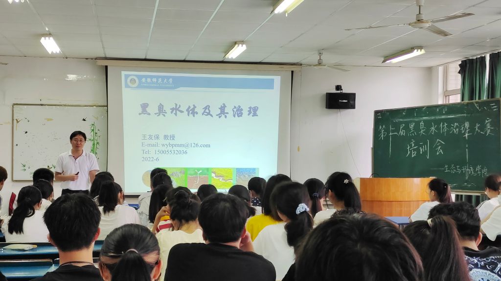在6.5世界环境日到来之际,为增加同学对专业知识的了解、提高生态保护意识,6月5日上午,公司邀请英国365集团官网王友保教授在公司实验楼201会议室举行了黑臭水体治理方案设计专题培训。公司团委书记郑合庆、2021级辅导员王梓、第二届黑臭水体治理方案大赛参赛同学参加了培训会,会议由郑合庆主持。