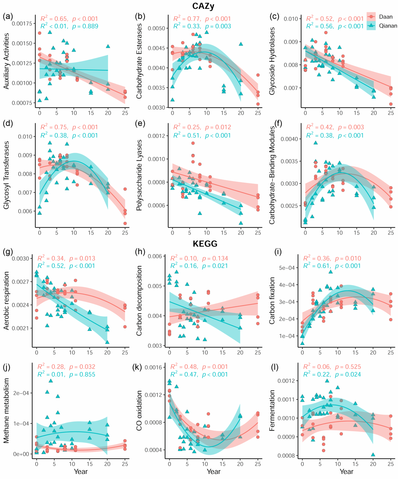 图2 微生物碳循环基因随水稻种植年限的变化