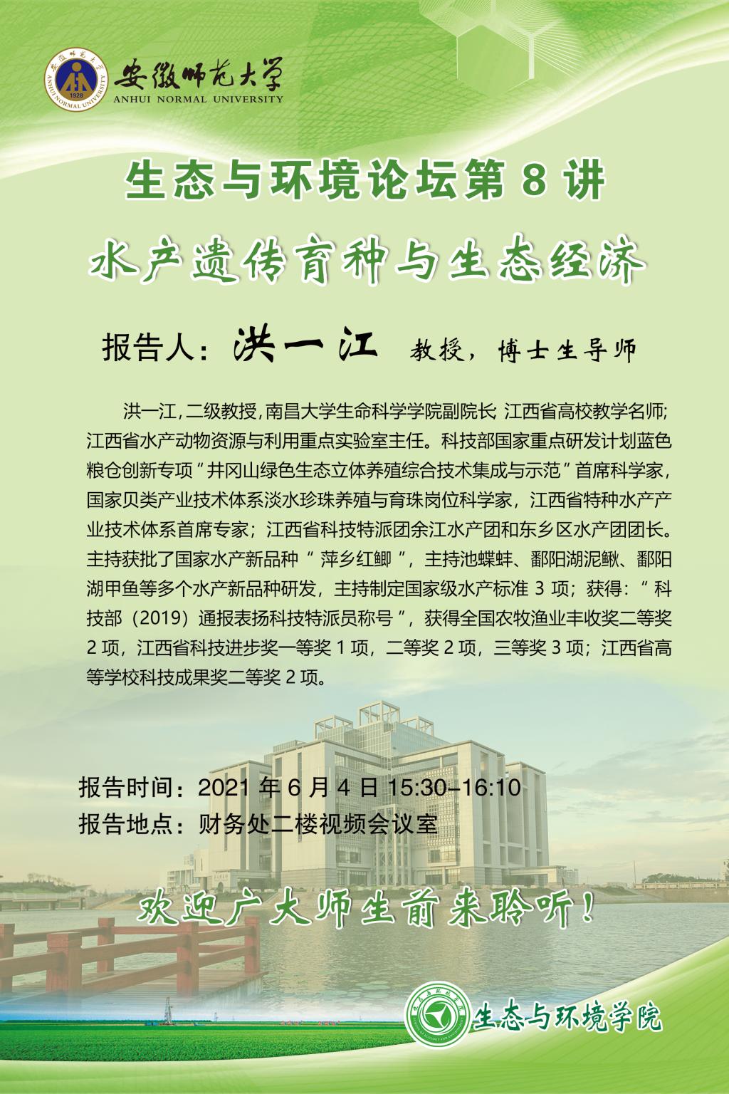 【学术预告】生态与环境论坛第8讲:水产遗传育种与生态经济