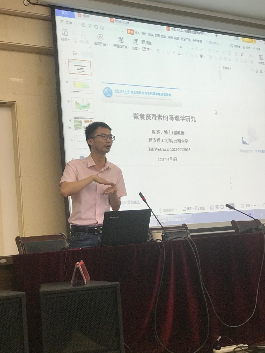 陈亮副教授从2019年我国湖泊水体富营养化情况,引出微囊藻毒素不仅是最初发现的蓝藻毒素之一,也是目前最关注的一类。慢性暴露在微囊藻毒素环境下会引起肝癌等疾病。通过环境剂量MC-LR长期暴露对斑马鱼肝毒性的蛋白质组学和代谢组学研究,以及大鼠肾上腺内分泌器官组织损伤研究,得出肾上腺轴被抑制,且雌性动物呈现出更高的神经内分泌反应;性腺轴上游激素GnRH及下游性醇激素生物合成受阻,从下丘脑及性腺水平致使轴紊乱。这是首次将MC-LR暴露后对于内分泌系统的干扰作用进行全面的研究。同时提出将微囊藻变废为宝的想法,但将微囊藻作为饲料原料的挑战仍然存在,实际应用时仍应考虑成本问题。