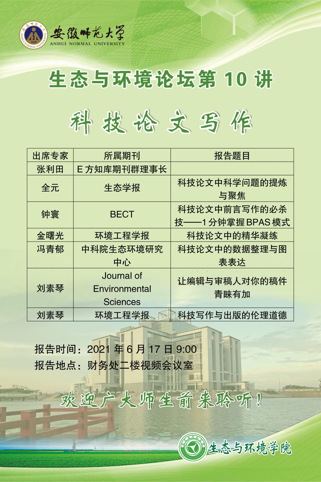 【学术预告】生态与环境论坛第10讲:科技论文写作