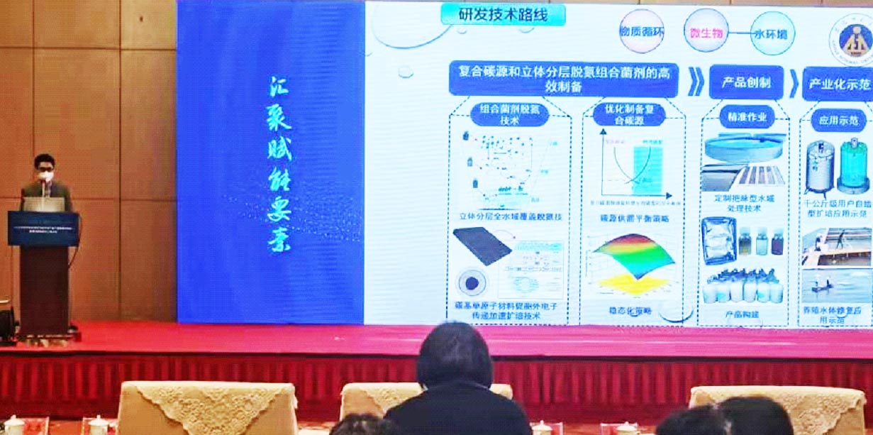 12月12日,英国365集团官网青年教师疏义林博士应邀参加2022安徽省新能源和节能环保产业产学研用对接会暨第四届绿色长三角论坛,在先进环保板块发布主题为“复合碳源和立体分层脱氮组合菌剂技术方案”原位清除养殖水体无机氮素的重点研究成果。