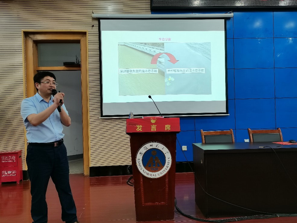 张修峰的报告主要是从水体富营养化主要成因、生态系统修复理论以及典型案例分析三个方面展开,从生态系统中氮、磷源汇的角度阐述了营养盐的输出和汇入,并指出营养盐源—汇的转换会导致水体富营养化这一重要现象。针对如何去修复水体富营养化这一问题,报告以惠州西湖的浅水湖泊生态系统和湖北的深水湖泊生态系统为例向大家展开了介绍。