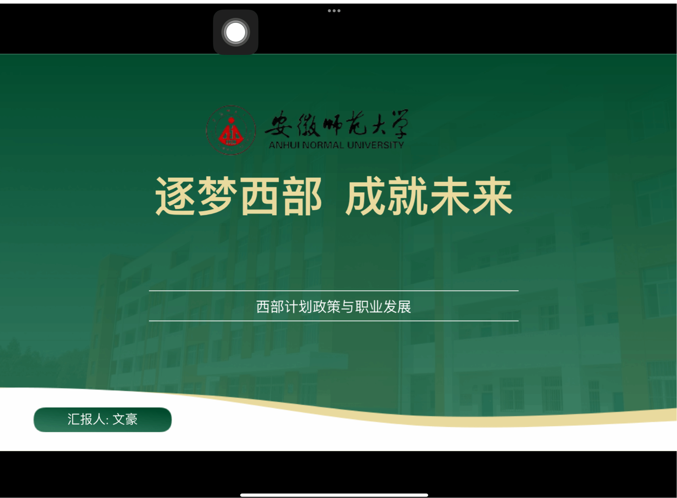 2024届优秀员工文豪以"筑梦西部,成就未来"为主题,主要介绍了西部计划的具体实施背景、招录策略的选拔标准、服务期及国家和地方财政补贴、相关优惠政策等内容。文豪还分享了自己的工作经历,建议同学们积极响应国家号召,投身基层,建设美丽西部!